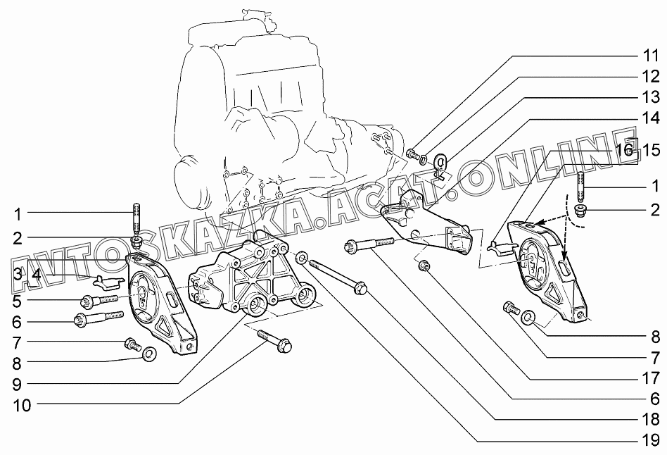 Подвеска двигателя ВАЗ 1118 (11183-30, 11183-31, 11183-33, 11183-40, 11183-41, 11183-43, 11184-30, 11184-33, 11184-40, 11184-43 - "Калина" (седан) )