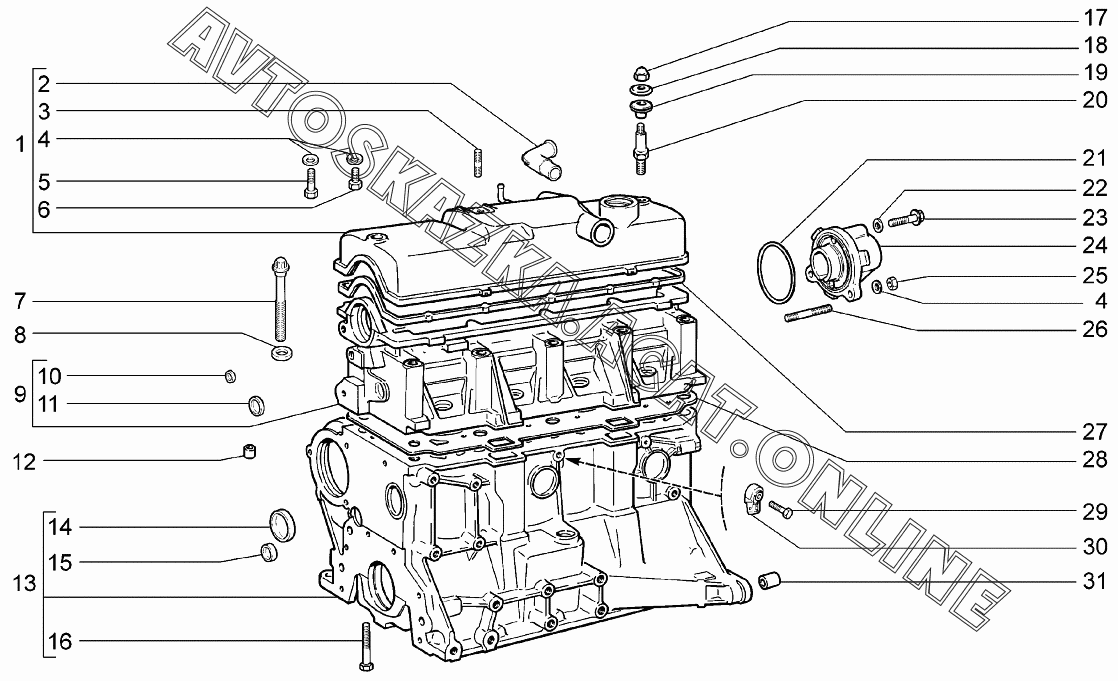 Блок цилиндров и головка блока ВАЗ 1118 (11183-30, 11183-31, 11183-33, 11183-40, 11183-41, 11183-43, 11184-30, 11184-33, 11184-40, 11184-43 - "Калина" (седан) )