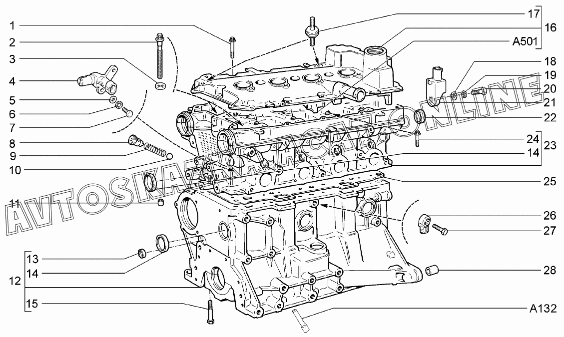 Блок цилиндров и головка блока ВАЗ 1118 (11183-30, 11183-31, 11183-33, 11183-40, 11183-41, 11183-43, 11184-30, 11184-33, 11184-40, 11184-43 - "Калина" (седан) )