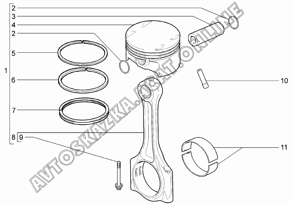 Шатуны и поршни ВАЗ 1118 (11183-30, 11183-31, 11183-33, 11183-40, 11183-41, 11183-43, 11184-30, 11184-33, 11184-40, 11184-43 - "Калина" (седан) )