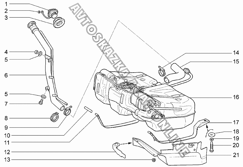 Бак топливный ВАЗ 1118 (11183-30, 11183-31, 11183-33, 11183-40, 11183-41, 11183-43, 11184-30, 11184-33, 11184-40, 11184-43 - "Калина" (седан) )