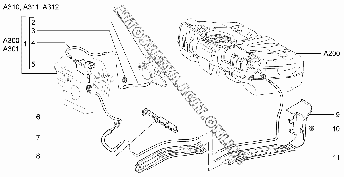 Система улавливания паров бензина ВАЗ 1118 (11183-30, 11183-31, 11183-33, 11183-40, 11183-41, 11183-43, 11184-30, 11184-33, 11184-40, 11184-43 - "Калина" (седан) )