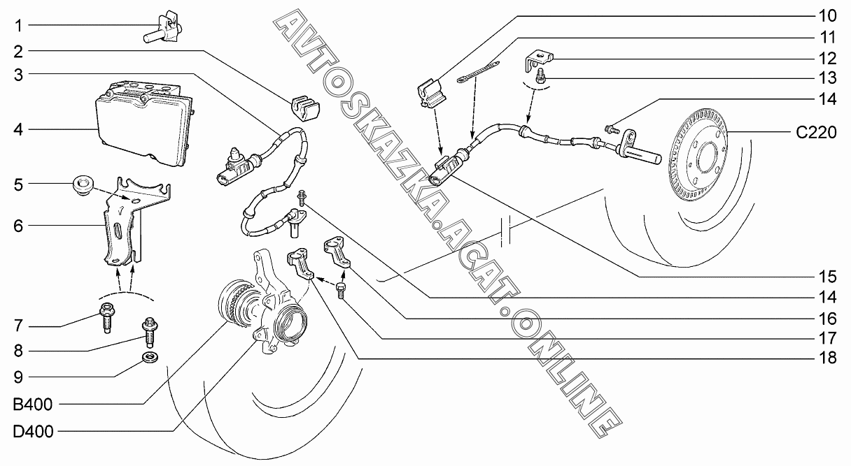 Гидроагрегат АБС и датчики скорости колес ВАЗ 1118 (11183-30, 11183-31, 11183-33, 11183-40, 11183-41, 11183-43, 11184-30, 11184-33, 11184-40, 11184-43 - "Калина" (седан) )