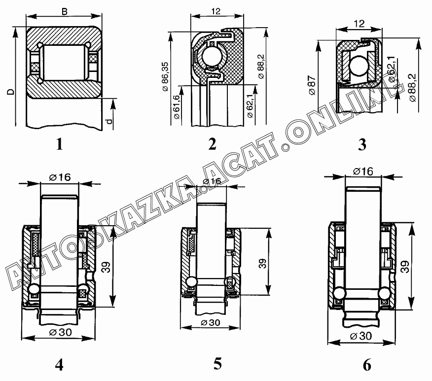 | Название детали: | Подшипник качения (D=87/88,2; d=62,1; B=12) |