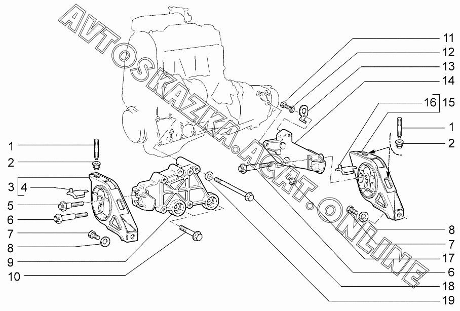 Подвеска двигателя (климатическая установка) ВАЗ 1119 (11193-30, 11193-31, 11193-33, 11193-40, 11193-41, 11193-43, 11194-30, 11194-33, 11194-40, 11194-43, 11194-50, 11194-53 - "Калина" (хэтчбек) )