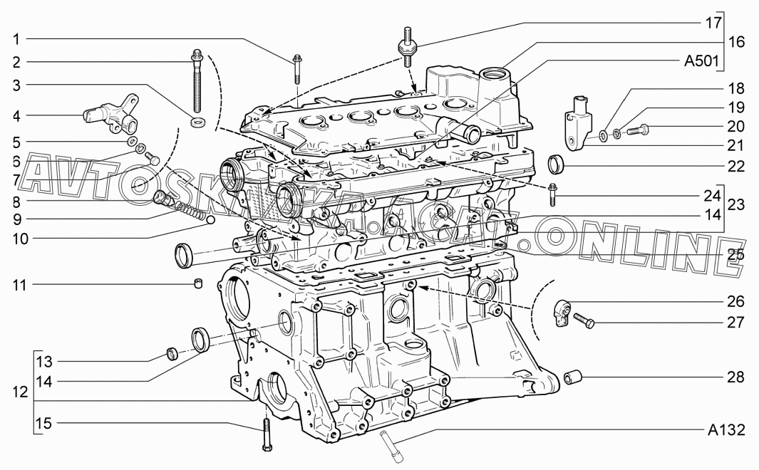 Блок цилиндров и головка блока ВАЗ 1119 (11193-30, 11193-31, 11193-33, 11193-40, 11193-41, 11193-43, 11194-30, 11194-33, 11194-40, 11194-43, 11194-50, 11194-53 - "Калина" (хэтчбек) )