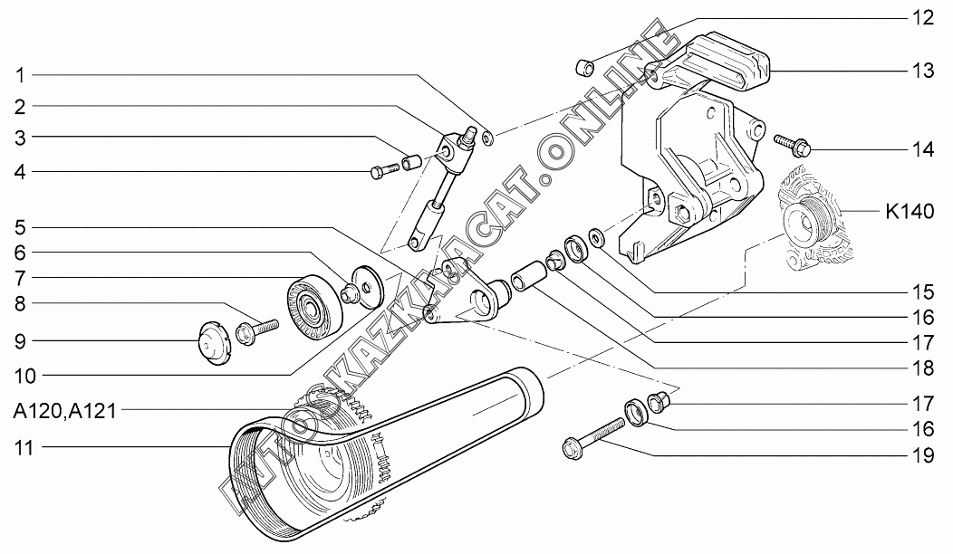Привод вспомогательных агрегатов ВАЗ 1119 (11193-30, 11193-31, 11193-33, 11193-40, 11193-41, 11193-43, 11194-30, 11194-33, 11194-40, 11194-43, 11194-50, 11194-53 - "Калина" (хэтчбек) )