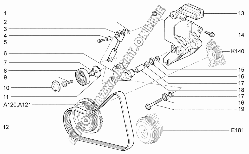 Привод вспомогательных агрегатов (климатическая установка) ВАЗ 1119 (11193-30, 11193-31, 11193-33, 11193-40, 11193-41, 11193-43, 11194-30, 11194-33, 11194-40, 11194-43, 11194-50, 11194-53 - "Калина" (хэтчбек) )