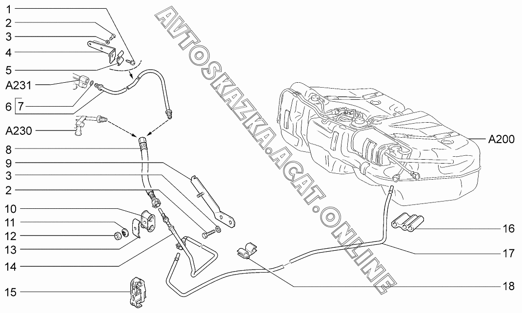 Трубопроводы топливные ВАЗ 1119 (11193-30, 11193-31, 11193-33, 11193-40, 11193-41, 11193-43, 11194-30, 11194-33, 11194-40, 11194-43, 11194-50, 11194-53 - "Калина" (хэтчбек) )