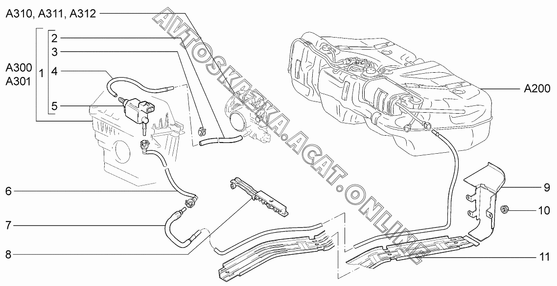 Система улавливания паров бензина ВАЗ 1119 (11193-30, 11193-31, 11193-33, 11193-40, 11193-41, 11193-43, 11194-30, 11194-33, 11194-40, 11194-43, 11194-50, 11194-53 - "Калина" (хэтчбек) )