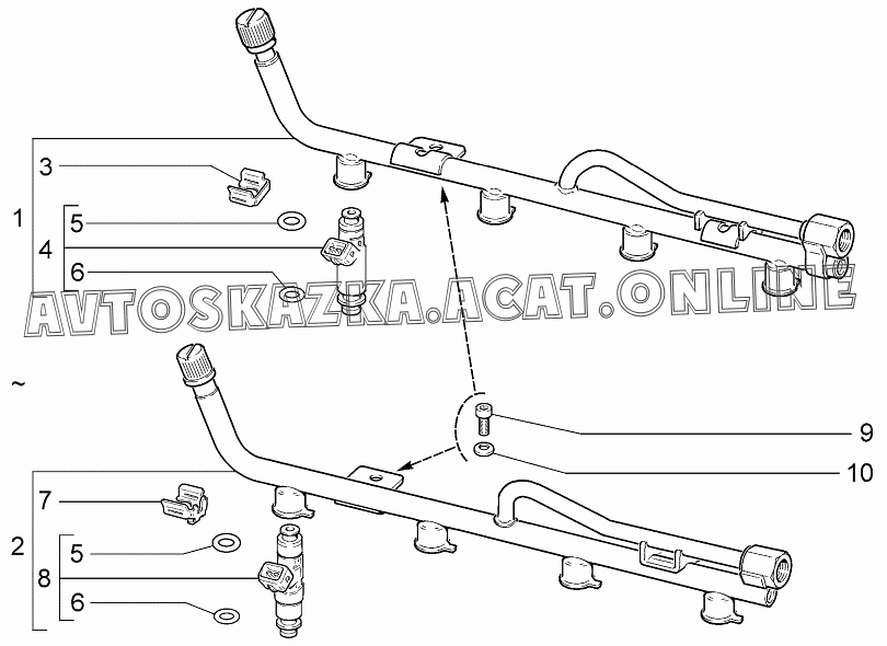 Рампа и форсунки ВАЗ 1119 (11193-30, 11193-31, 11193-33, 11193-40, 11193-41, 11193-43, 11194-30, 11194-33, 11194-40, 11194-43, 11194-50, 11194-53 - "Калина" (хэтчбек) )