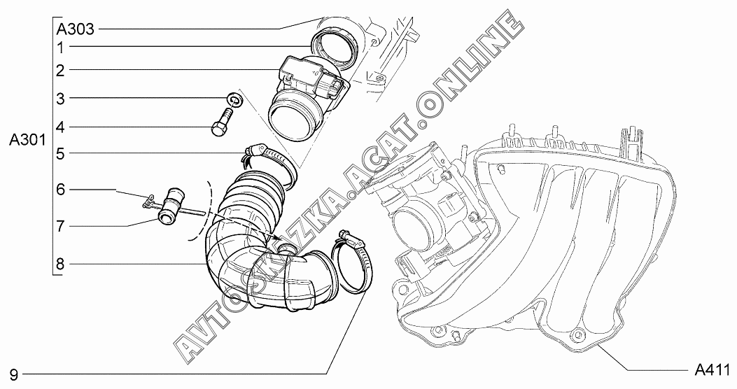 Система подачи воздуха (с электронной педалью акселератора) ВАЗ 1119 (11193-30, 11193-31, 11193-33, 11193-40, 11193-41, 11193-43, 11194-30, 11194-33, 11194-40, 11194-43, 11194-50, 11194-53 - "Калина" (хэтчбек) )