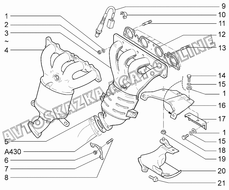 Труба приемная с нейтрализатором ВАЗ 1119 (11193-30, 11193-31, 11193-33, 11193-40, 11193-41, 11193-43, 11194-30, 11194-33, 11194-40, 11194-43, 11194-50, 11194-53 - "Калина" (хэтчбек) )