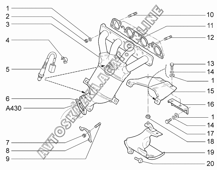 Труба приемная с нейтрализатором (с электронной педалью акселератора) ВАЗ 1119 (11193-30, 11193-31, 11193-33, 11193-40, 11193-41, 11193-43, 11194-30, 11194-33, 11194-40, 11194-43, 11194-50, 11194-53 - "Калина" (хэтчбек) )