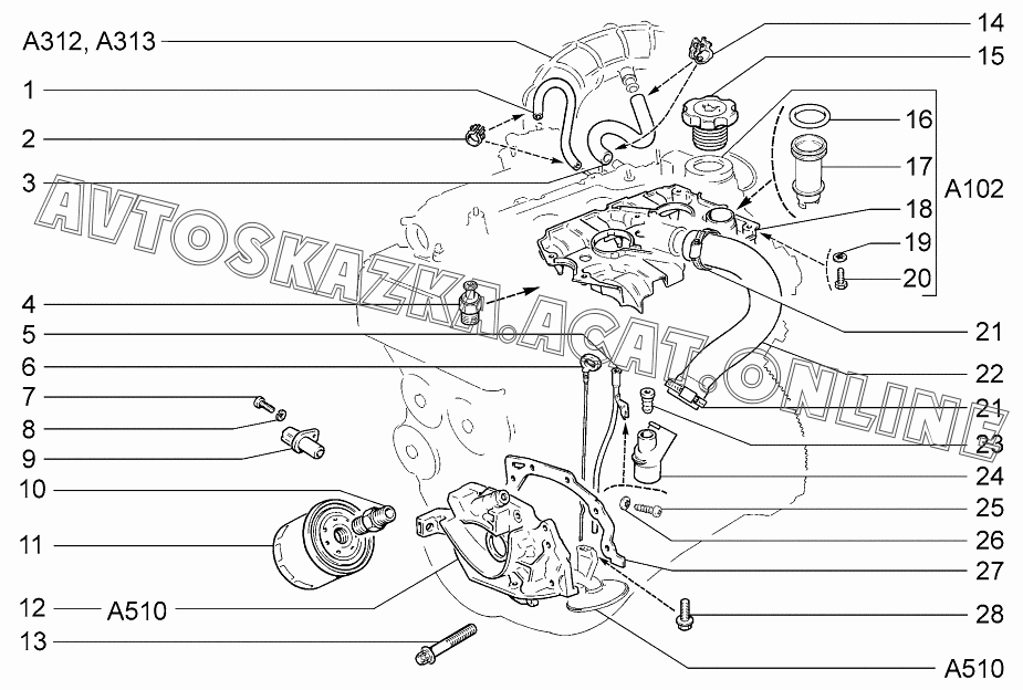 Система смазки и вентиляции ВАЗ 1119 (11193-30, 11193-31, 11193-33, 11193-40, 11193-41, 11193-43, 11194-30, 11194-33, 11194-40, 11194-43, 11194-50, 11194-53 - "Калина" (хэтчбек) )