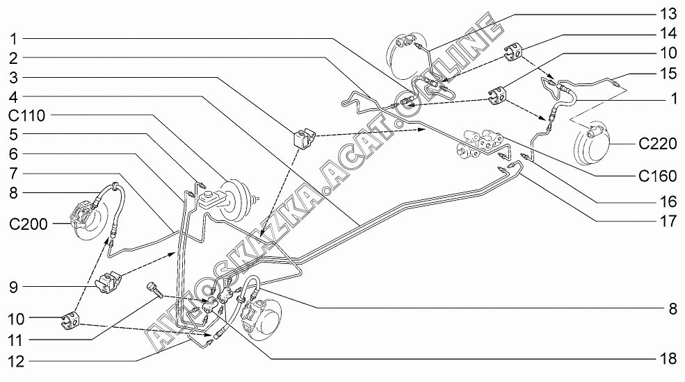 Привод гидротормозов ВАЗ 1119 (11193-30, 11193-31, 11193-33, 11193-40, 11193-41, 11193-43, 11194-30, 11194-33, 11194-40, 11194-43, 11194-50, 11194-53 - "Калина" (хэтчбек) )