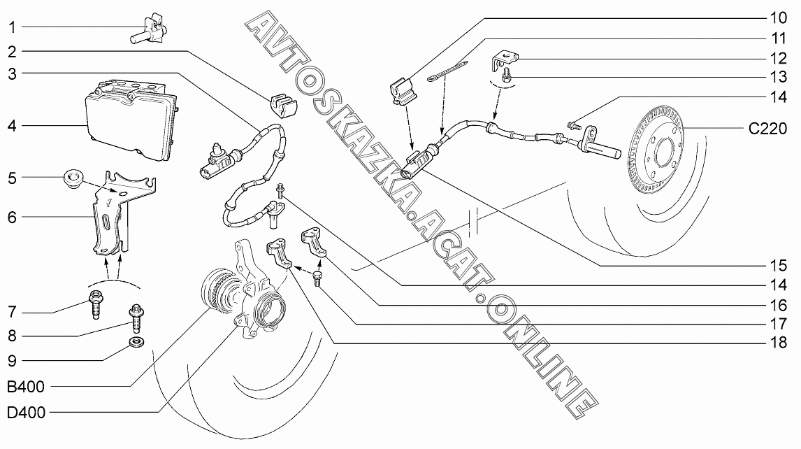Гидроагрегат АБС и датчики скорости колес АБС ВАЗ 1119 (11193-30, 11193-31, 11193-33, 11193-40, 11193-41, 11193-43, 11194-30, 11194-33, 11194-40, 11194-43, 11194-50, 11194-53 - "Калина" (хэтчбек) )
