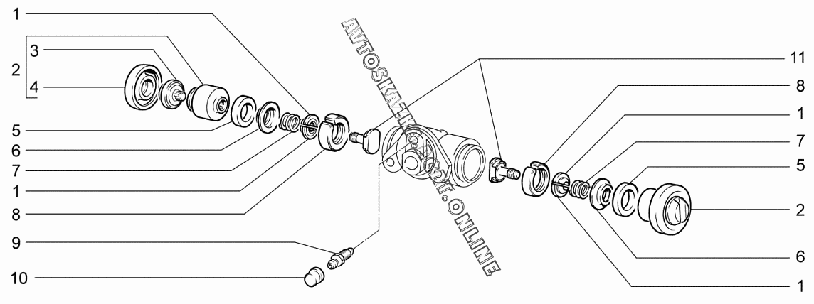 Цилиндр колесный заднего тормоза ВАЗ 1119 (11193-30, 11193-31, 11193-33, 11193-40, 11193-41, 11193-43, 11194-30, 11194-33, 11194-40, 11194-43, 11194-50, 11194-53 - "Калина" (хэтчбек) )