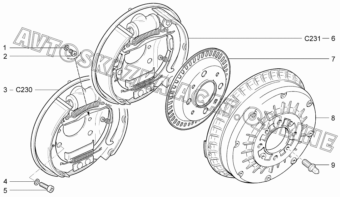 Тормоза задние ВАЗ 1119 (11193-30, 11193-31, 11193-33, 11193-40, 11193-41, 11193-43, 11194-30, 11194-33, 11194-40, 11194-43, 11194-50, 11194-53 - "Калина" (хэтчбек) )