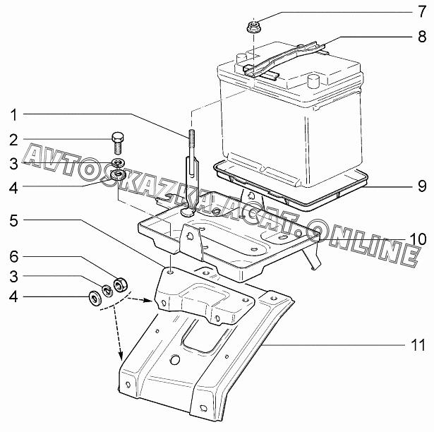 Батарея аккумуляторная ВАЗ 1119 (11193-30, 11193-31, 11193-33, 11193-40, 11193-41, 11193-43, 11194-30, 11194-33, 11194-40, 11194-43, 11194-50, 11194-53 - "Калина" (хэтчбек) )