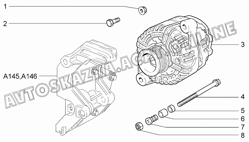 Генератор с арматурой ВАЗ 1119 (11193-30, 11193-31, 11193-33, 11193-40, 11193-41, 11193-43, 11194-30, 11194-33, 11194-40, 11194-43, 11194-50, 11194-53 - "Калина" (хэтчбек) )