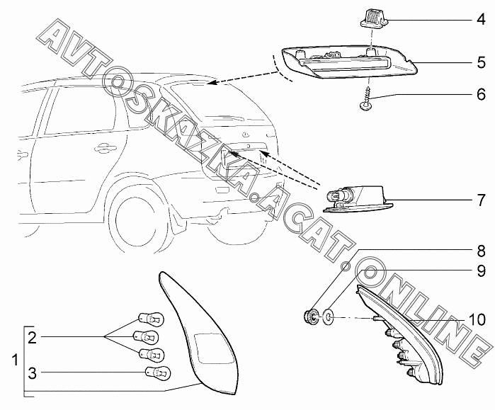 Освещение заднее ВАЗ 1119 (11193-30, 11193-31, 11193-33, 11193-40, 11193-41, 11193-43, 11194-30, 11194-33, 11194-40, 11194-43, 11194-50, 11194-53 - "Калина" (хэтчбек) )