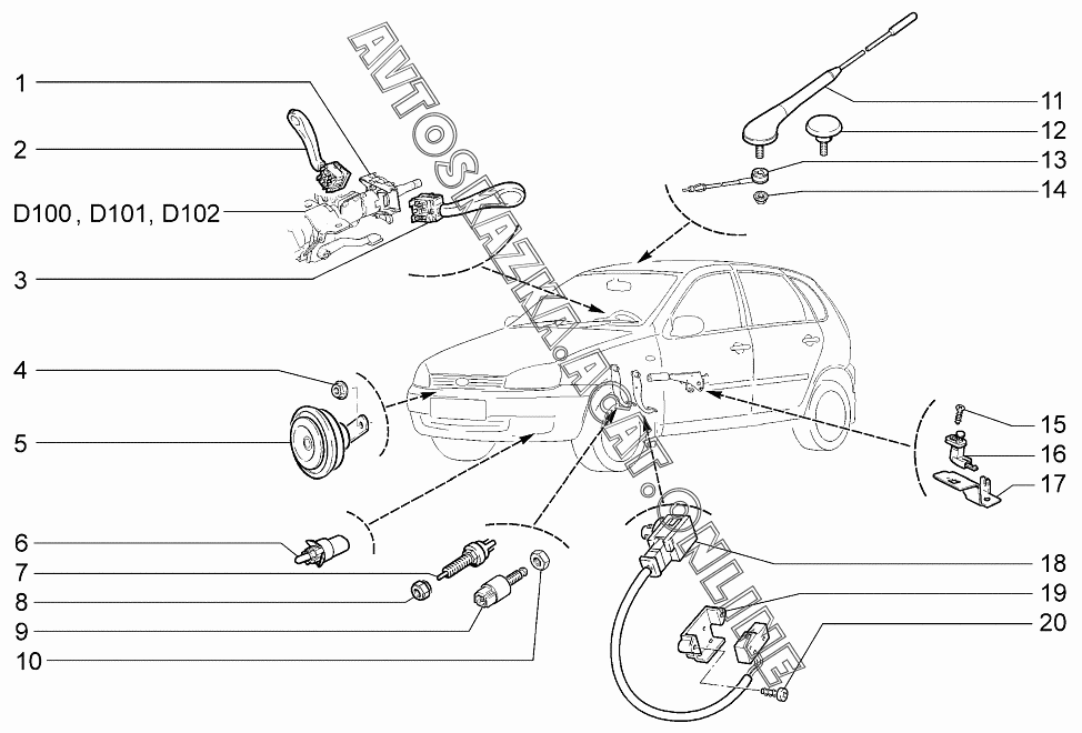 Сигналы ВАЗ 1119 (11193-30, 11193-31, 11193-33, 11193-40, 11193-41, 11193-43, 11194-30, 11194-33, 11194-40, 11194-43, 11194-50, 11194-53 - "Калина" (хэтчбек) )