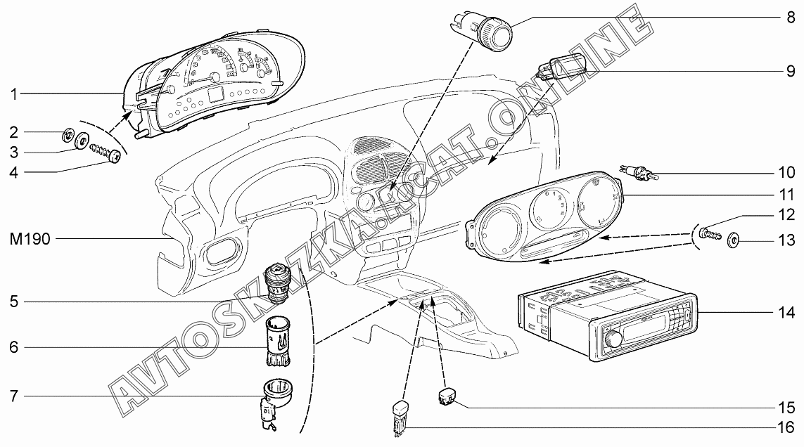 Приборы и подсветка ВАЗ 1119 (11193-30, 11193-31, 11193-33, 11193-40, 11193-41, 11193-43, 11194-30, 11194-33, 11194-40, 11194-43, 11194-50, 11194-53 - "Калина" (хэтчбек) )