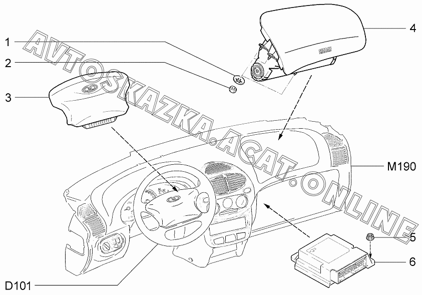 Надувные подушки безопасности ВАЗ 1119 (11193-30, 11193-31, 11193-33, 11193-40, 11193-41, 11193-43, 11194-30, 11194-33, 11194-40, 11194-43, 11194-50, 11194-53 - "Калина" (хэтчбек) )