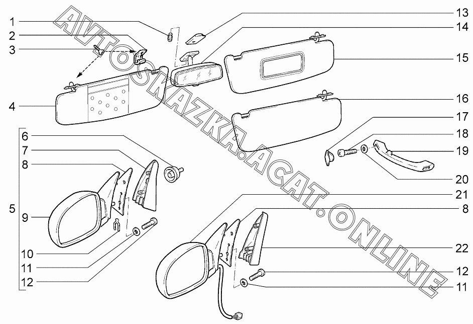 Принадлежности салона ВАЗ 1119 (11193-30, 11193-31, 11193-33, 11193-40, 11193-41, 11193-43, 11194-30, 11194-33, 11194-40, 11194-43, 11194-50, 11194-53 - "Калина" (хэтчбек) )