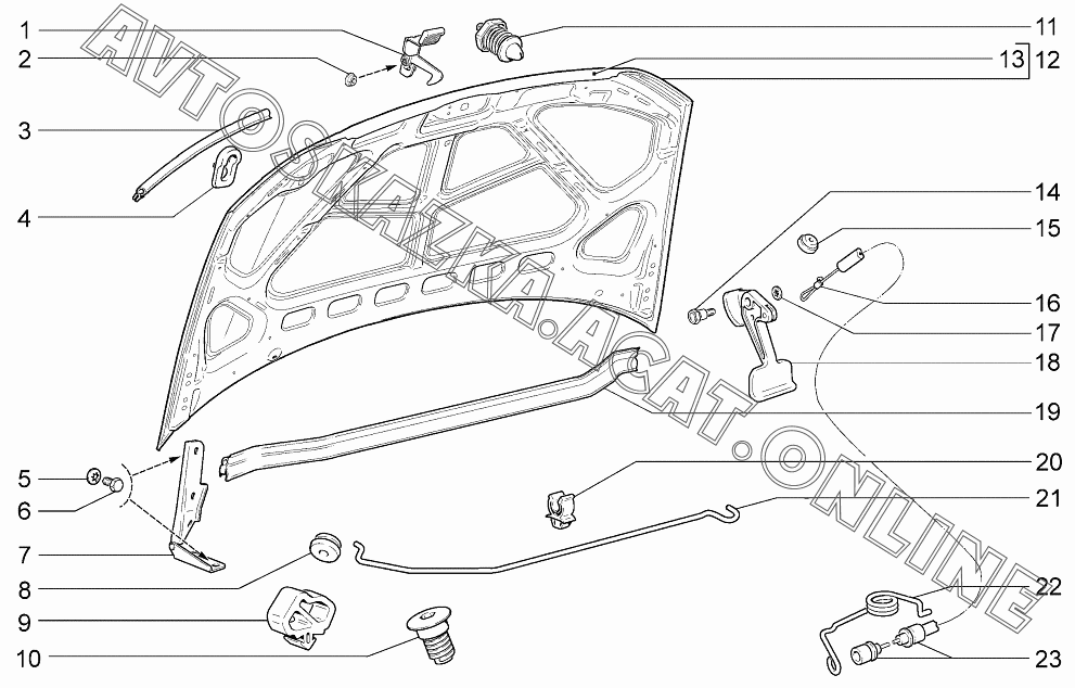 Капот ВАЗ 1119 (11193-30, 11193-31, 11193-33, 11193-40, 11193-41, 11193-43, 11194-30, 11194-33, 11194-40, 11194-43, 11194-50, 11194-53 - "Калина" (хэтчбек) )