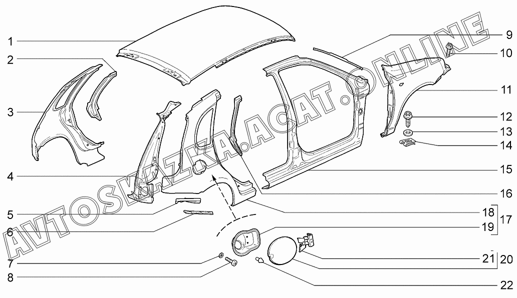 Панели кузова ВАЗ 1119 (11193-30, 11193-31, 11193-33, 11193-40, 11193-41, 11193-43, 11194-30, 11194-33, 11194-40, 11194-43, 11194-50, 11194-53 - "Калина" (хэтчбек) )
