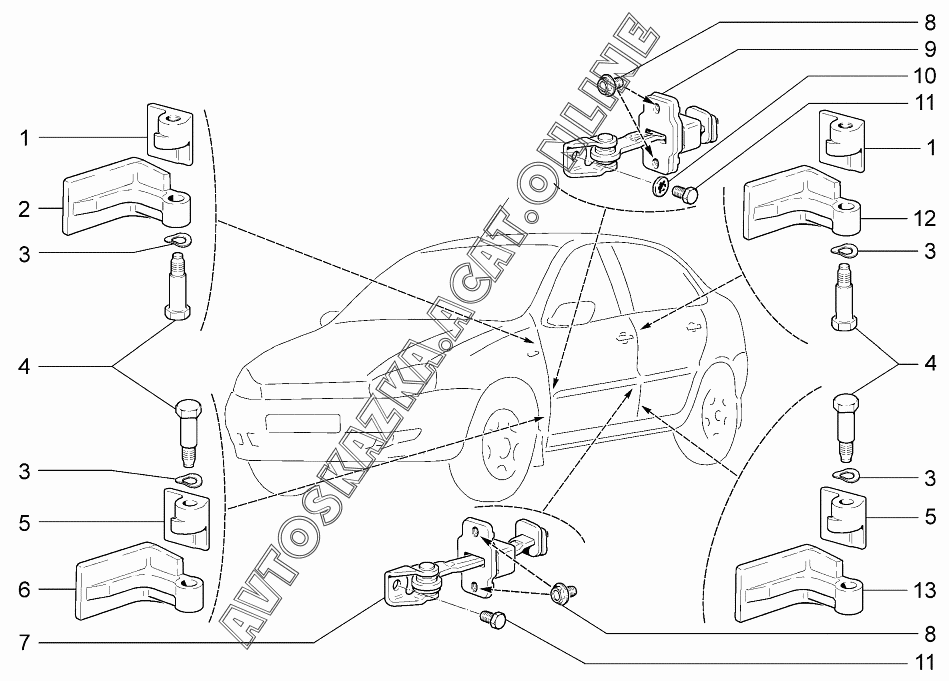 Петли дверей ВАЗ 1119 (11193-30, 11193-31, 11193-33, 11193-40, 11193-41, 11193-43, 11194-30, 11194-33, 11194-40, 11194-43, 11194-50, 11194-53 - "Калина" (хэтчбек) )