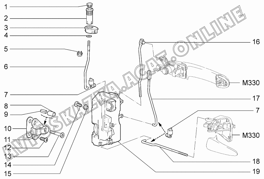 Замки передних дверей ВАЗ 1119 (11193-30, 11193-31, 11193-33, 11193-40, 11193-41, 11193-43, 11194-30, 11194-33, 11194-40, 11194-43, 11194-50, 11194-53 - "Калина" (хэтчбек) )