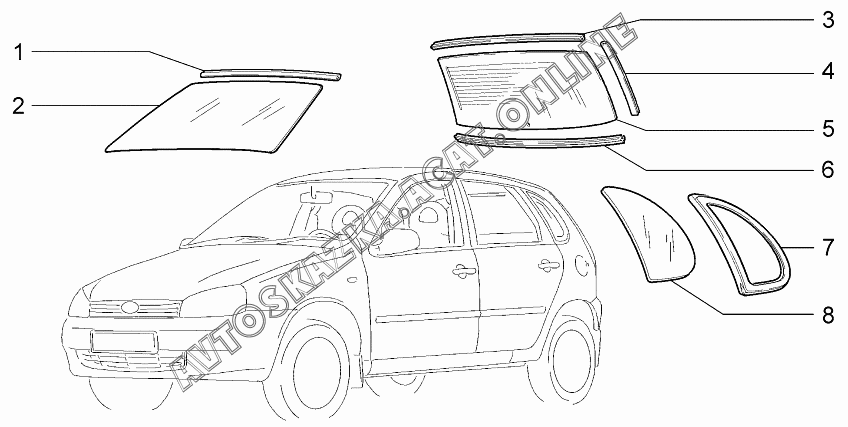 Окна ВАЗ 1119 (11193-30, 11193-31, 11193-33, 11193-40, 11193-41, 11193-43, 11194-30, 11194-33, 11194-40, 11194-43, 11194-50, 11194-53 - "Калина" (хэтчбек) )
