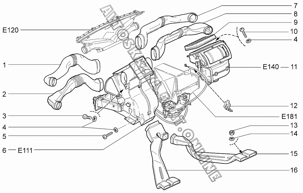 Система вентиляции и отопления (климатическая установка) ВАЗ 1119 (11193-30, 11193-31, 11193-33, 11193-40, 11193-41, 11193-43, 11194-30, 11194-33, 11194-40, 11194-43, 11194-50, 11194-53 - "Калина" (хэтчбек) )