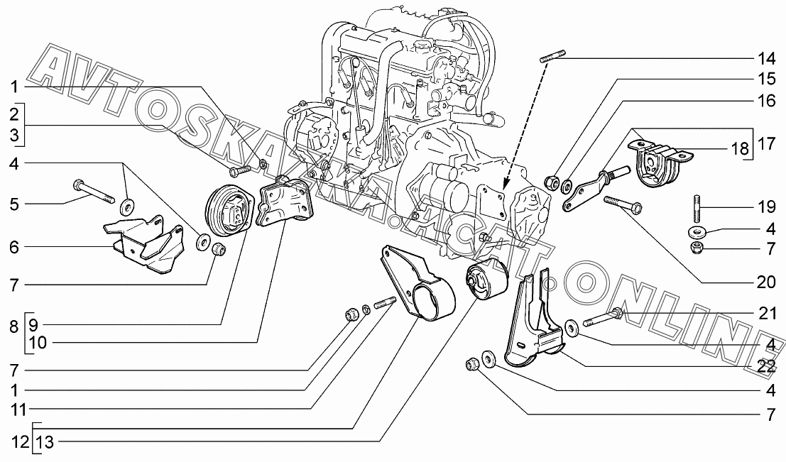 Подвеска двигателя ВАЗ 2113 (21134-20, 21134-22, 21134-30, 21134-32)
