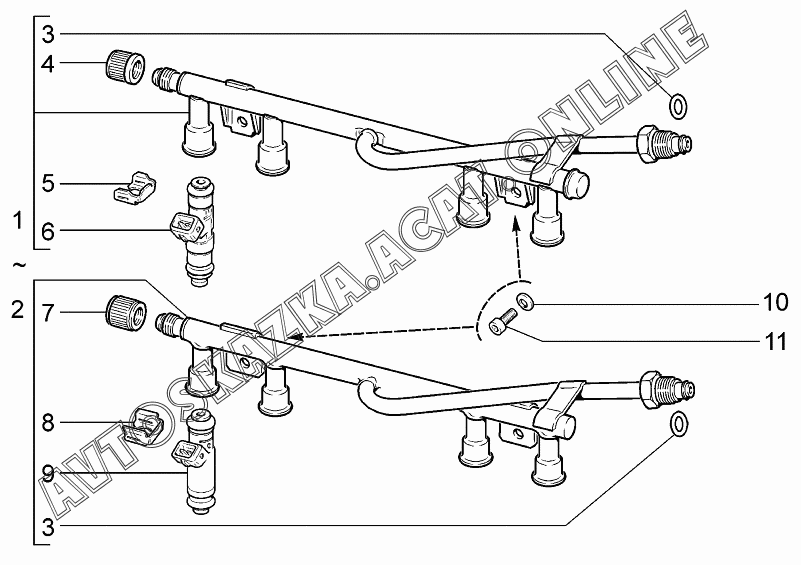 Рампа и форсунки ВАЗ 2113 (21134-20, 21134-22, 21134-30, 21134-32)