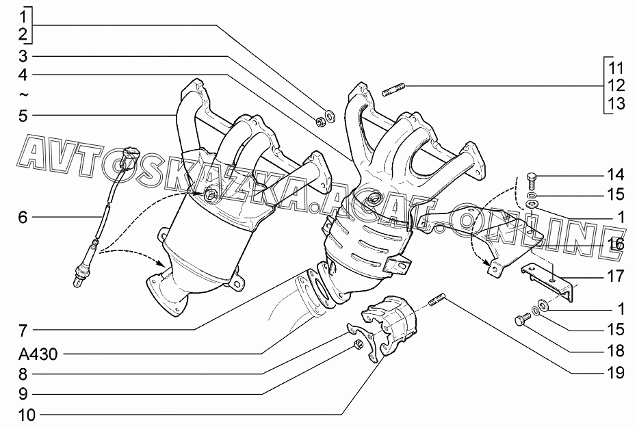 Трубы выпускные (с нейтрализатором) ВАЗ 2113 (21134-20, 21134-22, 21134-30, 21134-32)