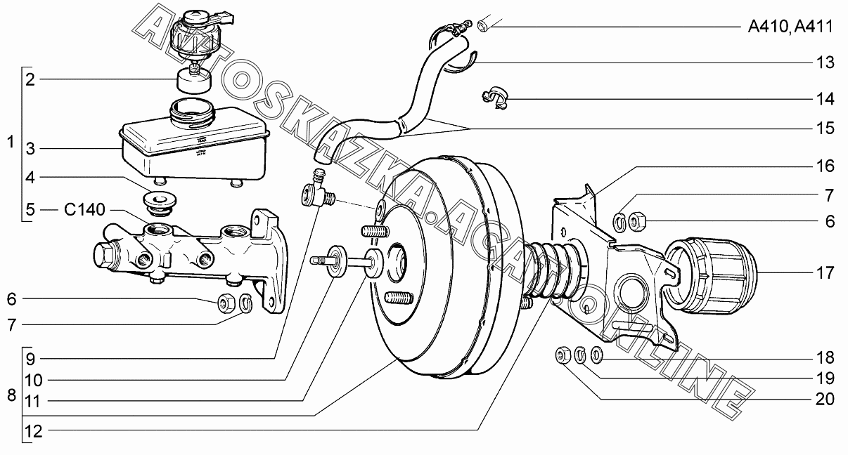 Элементы привода тормозов ВАЗ 2113 (21134-20, 21134-22, 21134-30, 21134-32)
