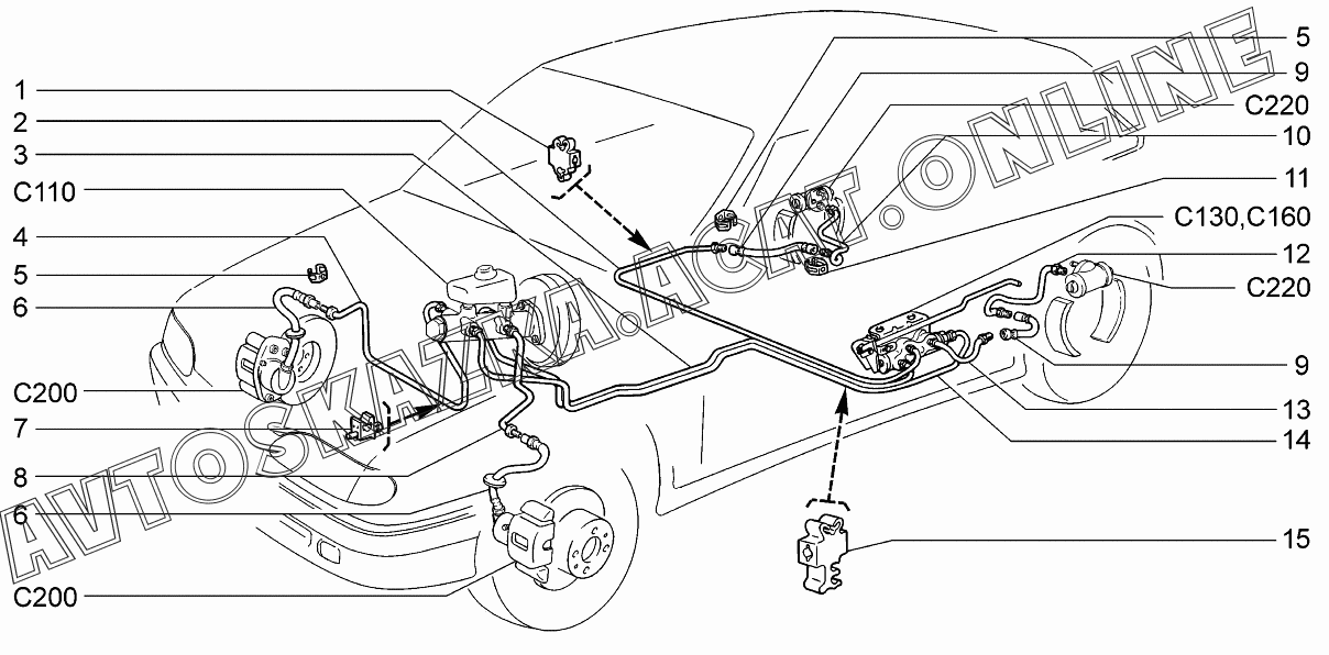 Привод гидротормозов ВАЗ 2113 (21134-20, 21134-22, 21134-30, 21134-32)