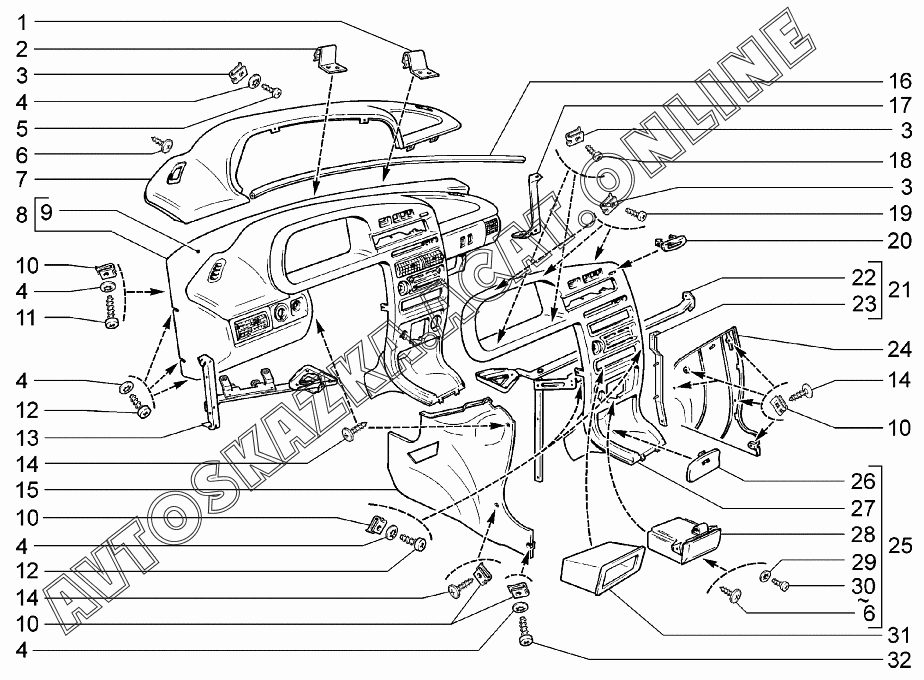 Панель приборов ВАЗ 2113 (21134-20, 21134-22, 21134-30, 21134-32)