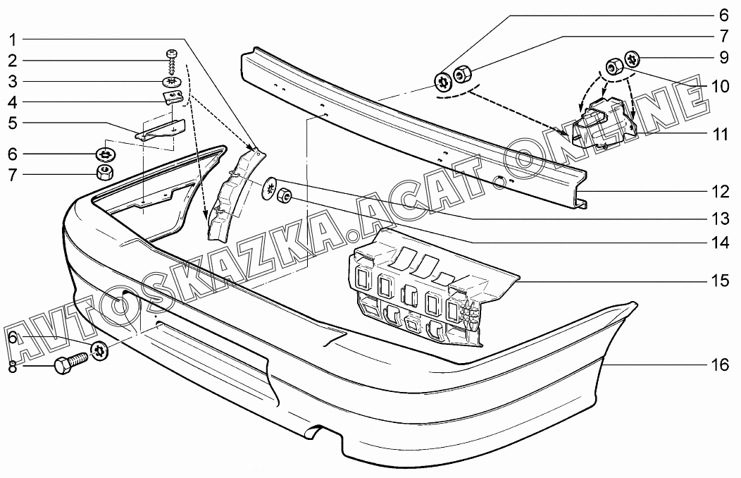 Бампер задний ВАЗ 2113 (21134-20, 21134-22, 21134-30, 21134-32)