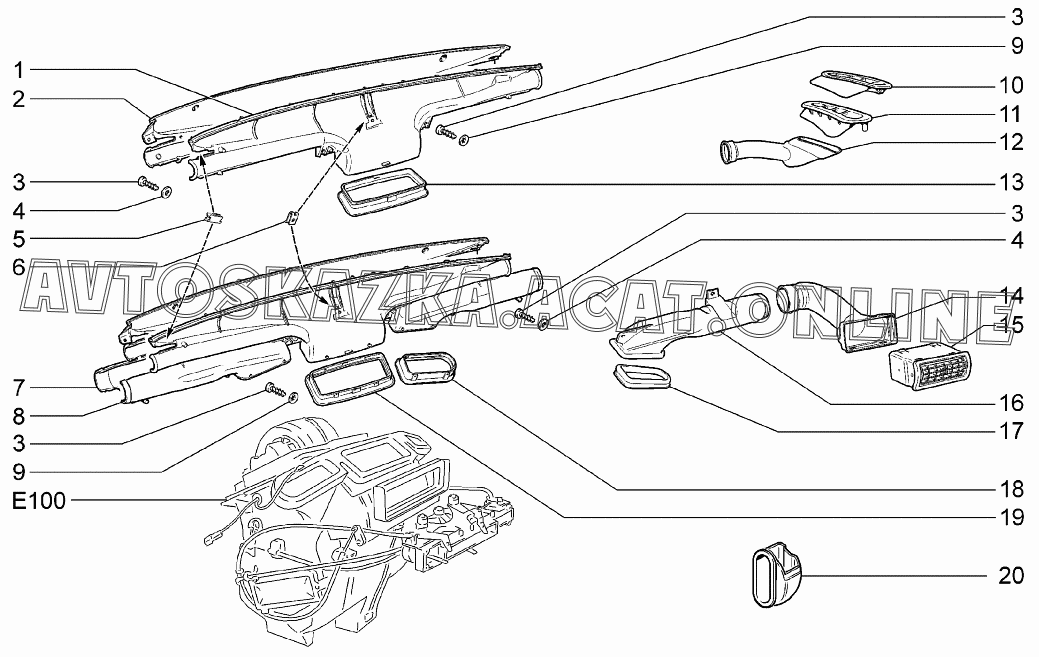 Воздухопроводы отопителя ВАЗ 2113 (21134-20, 21134-22, 21134-30, 21134-32)