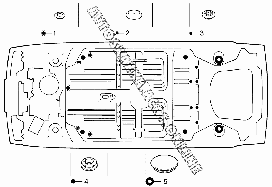 Схема установки заглушек ВАЗ 2113 (21134-20, 21134-22, 21134-30, 21134-32)
