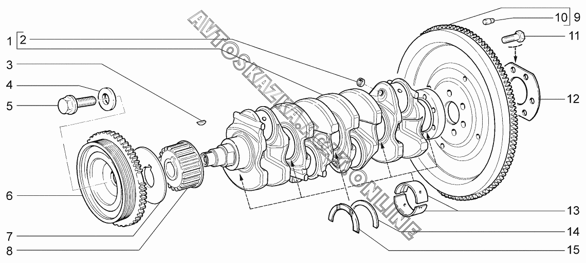 Вал коленчатый и маховик ВАЗ 2170 (21701-00, 21702-00, 21703-01, 21703-02, 21703-03 - "Priora" (седан))