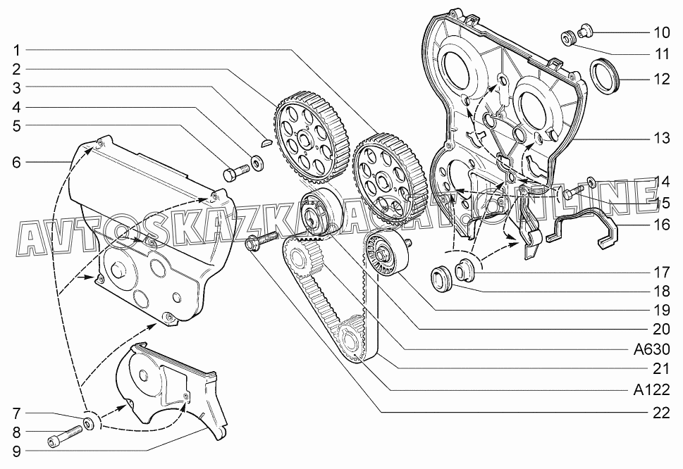 Привод валов распределительных ВАЗ 2170 (21701-00, 21702-00, 21703-01, 21703-02, 21703-03 - "Priora" (седан))