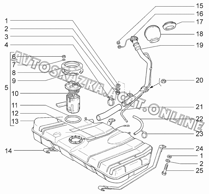 Бак топливный ВАЗ 2170 (21701-00, 21702-00, 21703-01, 21703-02, 21703-03 - "Priora" (седан))