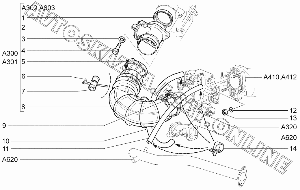 Система подачи воздуха ВАЗ 2170 (21701-00, 21702-00, 21703-01, 21703-02, 21703-03 - "Priora" (седан))