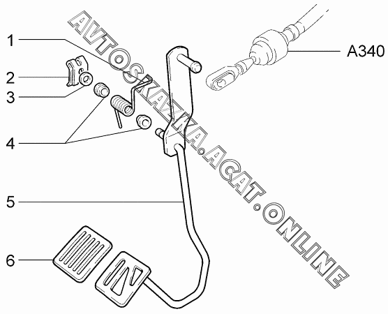 Педаль привода акселератора ВАЗ 2170 (21701-00, 21702-00, 21703-01, 21703-02, 21703-03 - "Priora" (седан))